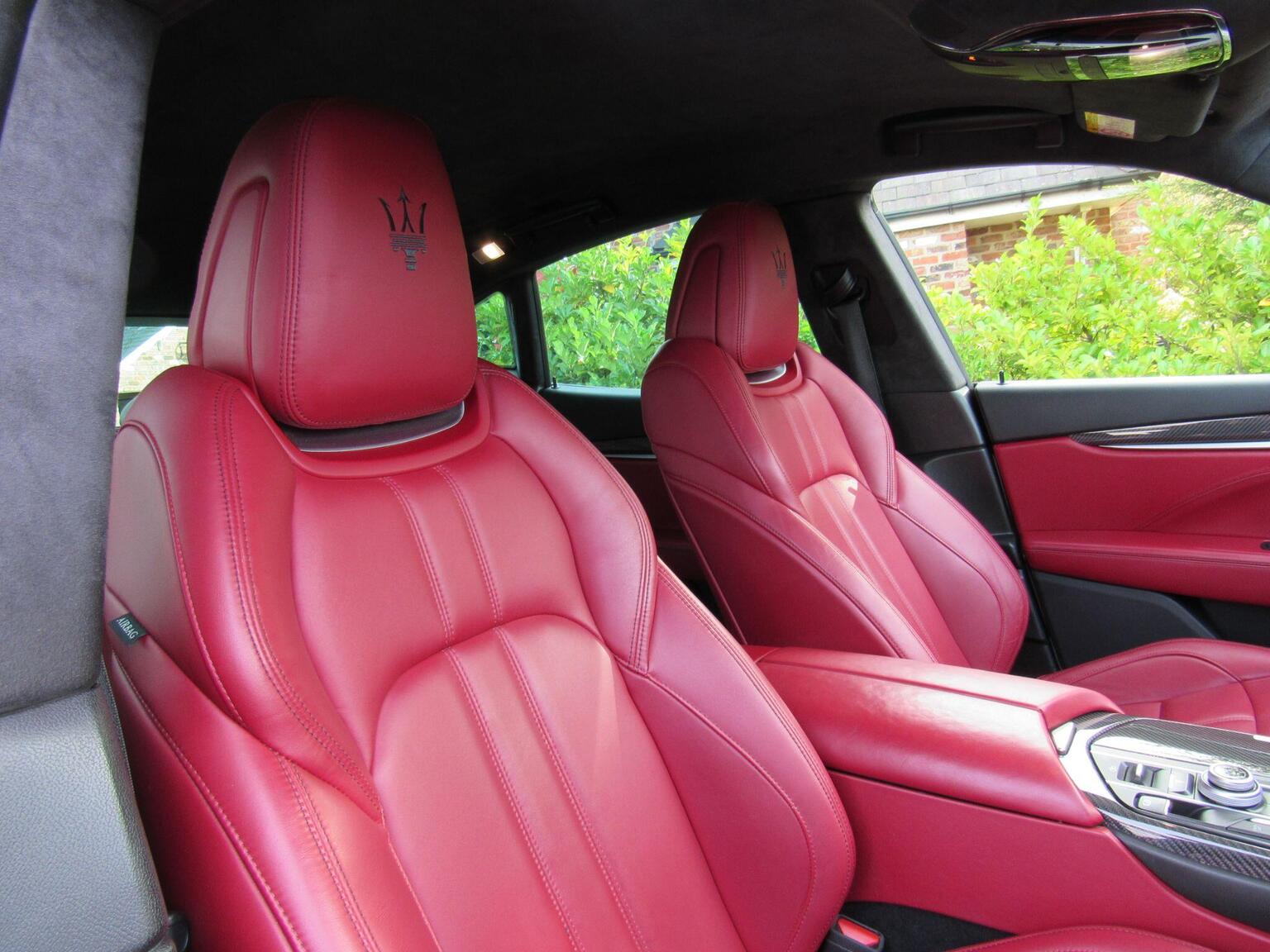 18in Alloy Wheels - Borea Design, 7in Multifunction Digital Display Cluster with On-Board Computer - Driver Info, Active Cruise Control, Air Adaptive Suspension, Air Quality Sensor, Air Shutter Control - Improves Aerodynamic Properties and Fuel Consumption, Airbags - Passenger Deactivation, Alarm System, Audio System - 280W - 8x Speakers, Bi-Xenon Headlights with Integrated LED Daytime Running Lights, Boot Lateral Cargo Net and 12V Socket, Brake Calipers in Oxidised Grey, Dashboard Mounted Maserati Design Clock, Demist Sensor, Driver and Passenger Sunvisor with Mirror and Courtesy Light, Dual Stage Front Airbags - Side and Window Airbags, Dual Zone Automatic Climate Control, EPB - Electronic Parking Brake, Electric Front and Rear Windows with Anti Pinch Sensor, Electrically Adjustable Front Seats, Electrochromatic - Electrically Adjustable - Heated - Foldable Door Mirrors, Electrochromatic Interior Rear View Mirror, Exterior Trim - Chromeline, Fabric Headlining, Fix and Go Tyre Sealing Compound and Electric Air Compressor, Front Armrest with Twin Mechanical Opening, Front Grille with Frame and Bars in Chrome, Front and Rear Courtesy Lamps - Footwell - Door Panel Handle LED Lights, Front and Rear Head Restraints with Embossed Trident Logo, Front and Rear LED Fog Lights, Front and Rear Parking Sensors with Graphical Display on Central Digital Cluster, Front and Rear Seat Belts with Pre-Tensioners and Load Limiters, Full LED Taillights and Third Stop Light, Heated Rear Windscreen, Hill Descent Control, Hill Holder, I.C.E. Control - Increased Control and Efficency, Instrument Cluster Dials in Maserati Blu with White Backlighting, Keyless Entry and Keyless Go Function, Laminated Front Glass with High Thermal and Noise Insulation, MSP - Maserati Stability Program, MTC Plus - Maserati Touch Control Plus, Maserati Active Sound - Active Exhaust Sound System, Mechanical Limited-Slip Differential, Multi-Function Steering Wheel and Gear Knob in Leather - Nero, NavTrak Vehicle Tracking System with Automatic Driver Recognition and Remote Inhibition, OFF ROAD Mode Setting via Off Road Button, One 12V and Two USB Sockets - Rear Passengers, Ornamental Side Grilles in Chrome, Piano Black Trim for Selected Interior Details, Power Tailgate, Rain Sensor, Rear Armrest with 2x Cupholders, Rear Seats with Ski Hatch - Load Through System, Refridgerated Front Passenger Glove Box with USB Socket, SPORT Mode Setting via Sport Button, Skyhook - Electronically Variable Active Damping Suspension System, Speed Sensitive Power Assisted Steering, Split Folding Rear Seat at 60-40, Steering Column with Manual Height and Reach Adjustments, Summer Tyres, TPMS - Tyre Pressure Monitoring System, Torque Vectoring, Twin Dual Pipe Exhaust System in Chrome-Plated Stainless Steel, Velour Floor Mats
