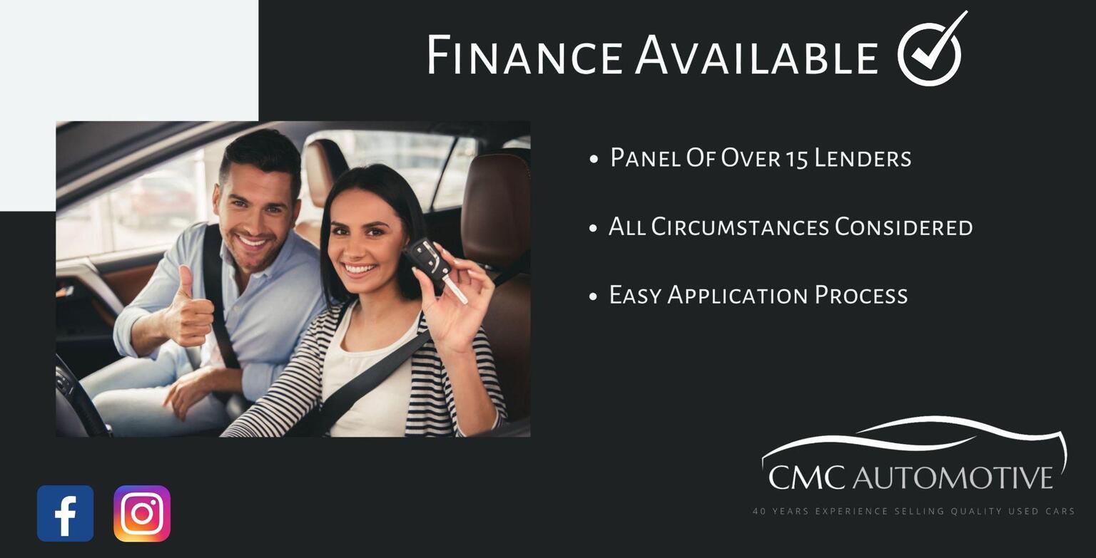 CMC Automotive is registered in England and Wales. CMC Automotive is authorised and regulated by the Financial Conduct Authority, under FCA number: 656900. We act as a credit broker not a lender. We work with several carefully selected credit providers who may be able to offer you finance for your purchase. (Written Quotation available upon request). Whichever lender we introduce you to, we will typically receive commission from them (either a fixed fee or a fixed percentage of the amount you borrow). The lenders we work with could pay commission at different rates. All finance is subject to status and income. Terms and conditions apply. Applicants must be 18 year or over. We are only able to offer finance products from these providers.